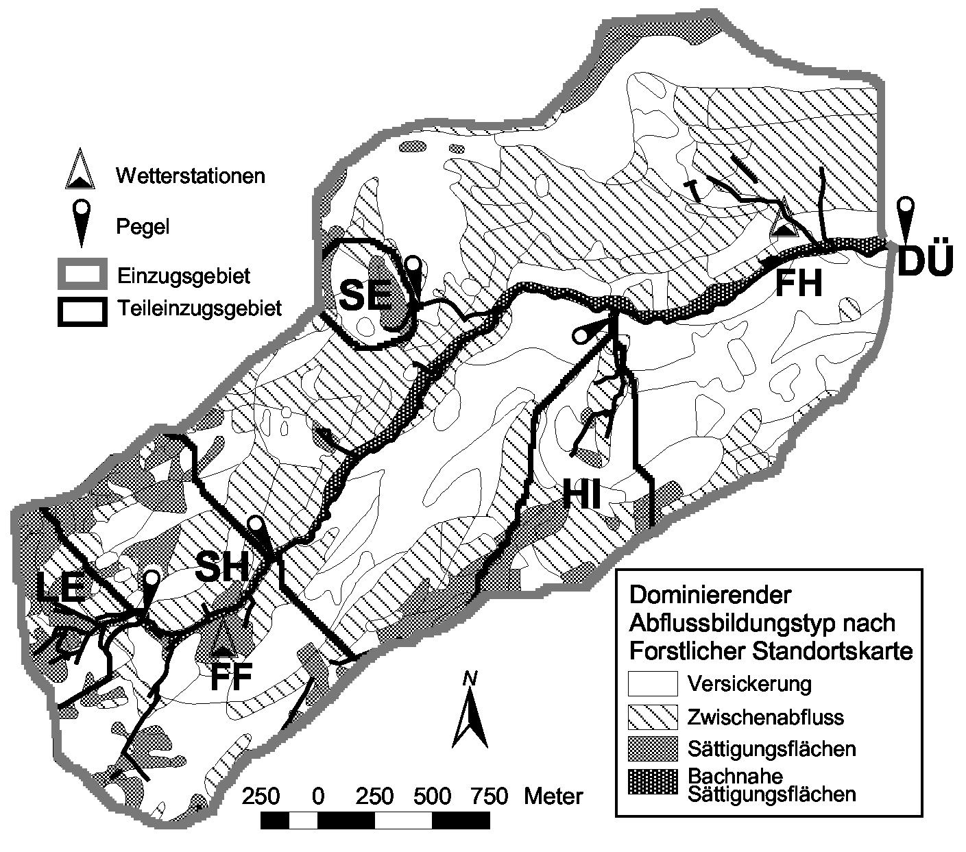 soil water and runoff were carried out in the catchment Duerreychbach (northern