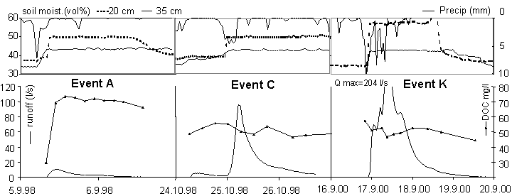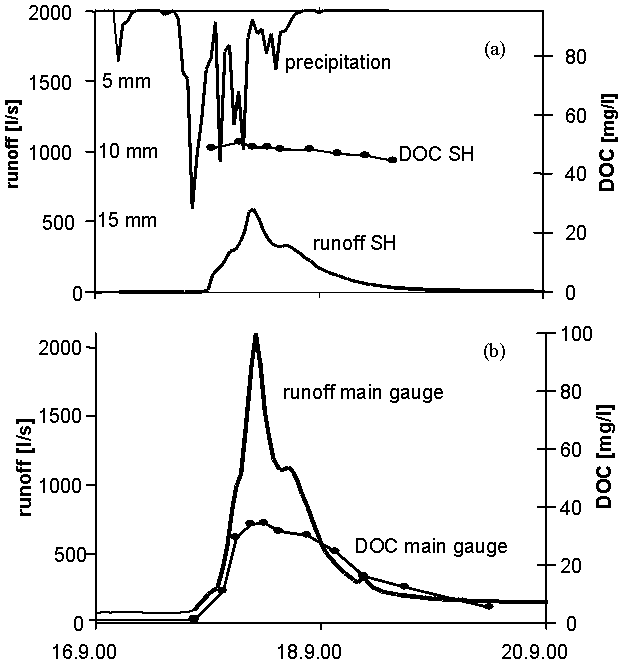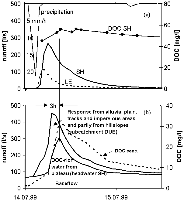 of event and pre-event water during runoff events. The analysis of DOC