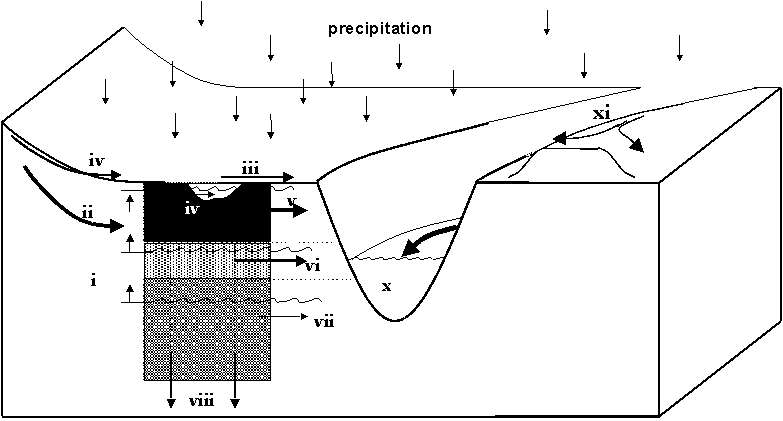 the sequence of dominating hydrological processes, to quantify surface