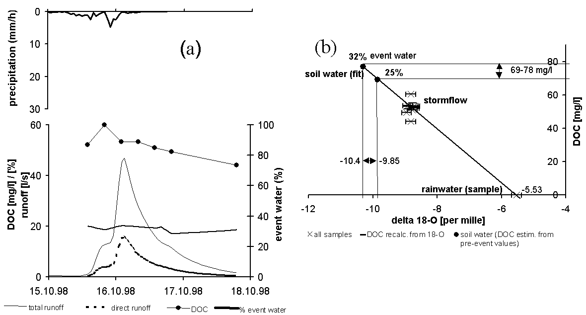 data in a mixing diagram allowed to quantify the fraction of event water.