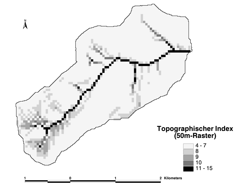 mit Casper wurde der Topographische Index (Beven und Kirkby 1979) als Maß